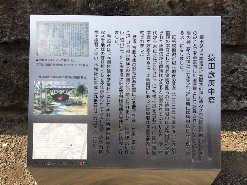 御社殿の左隣には2017年3月まで赤羽台にあった赤羽台猿田彦神社にあった猿田彦庚申塔も移設されています。