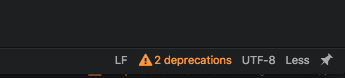 この deprecations というオレンジの部分をClickすると親切にもやるべき事を教えてくれます。英語で。。lessファイルの表記を変更せよ!とのお達しなので変更して下さい。ただ修正箇所は2ヶ所で済みます。
