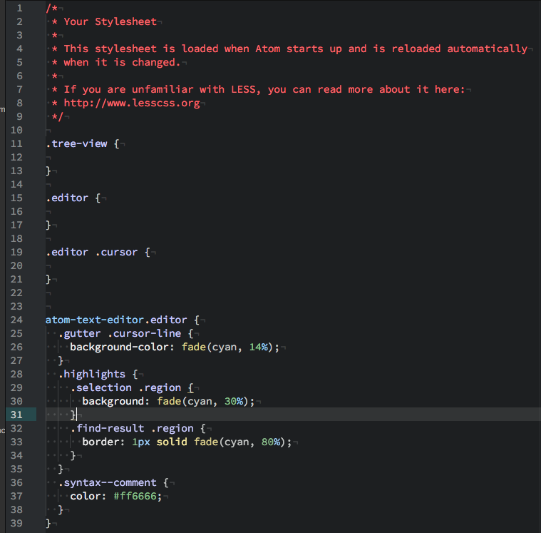 styles.lessファイルはどこにあるか?先程のClickした先にはstyles.lessファイルのPATHが出ていますので、そこをAtomで開いてファイルセーブすれば完了です。それどこ?という人は、atomをインストールしたディレクトリ、大方の人はホームディレクトリにある .atom というディレクトリの中にあります。